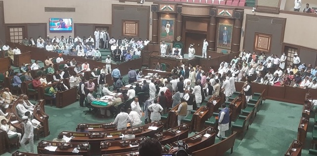 भोपाल- मध्य प्रदेश विधानसभा में शीतकालीन सत्र के दूसरे दिन विपक्षी दल कांग्रेस द्वारा रखे गए अविश्वास प्रस्ताव को विधानसभा अध्यक्ष ने स्वीकार कर लिया है। इस पर आज यानि बुधवार को चर्चा होगी। वहीं, विकास कार्यों में भेदभाव को लेकर पूर्व मुख्यमंत्री कमलनाथ के आरोपों को लेकर जमकर हंगामा हुआ।